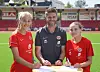 Stolte nye Arna-Bjørnar-spelarar: Mina Bell Folland og Nora Blindheim Nøss signerte onsdag kveld ein treårskontrakt med toppserieklubben Arna-Bjørnar. Her i lag med sports- og utviklingssjef, Erik Mjelde.