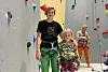 Offisiell opning: 13 år gamle Sebastian Føleide og hans seks år gamle søster, Thea Marie Føleide, fekk æra av å demonstrera dei utfordrande rutene i den nye klatreveggen i Os Idrettspark.